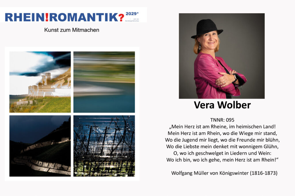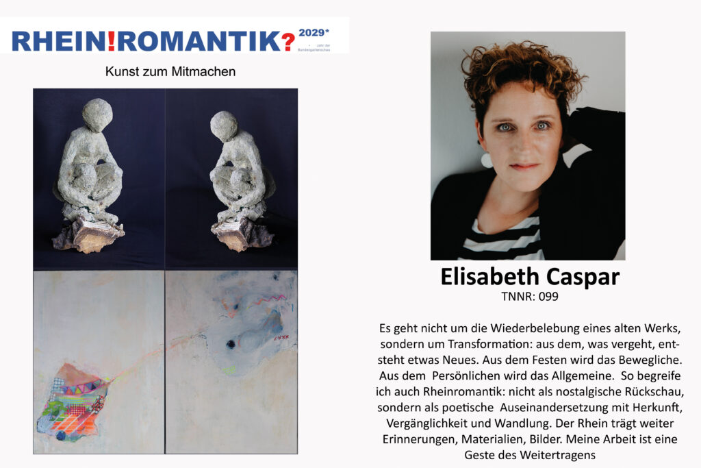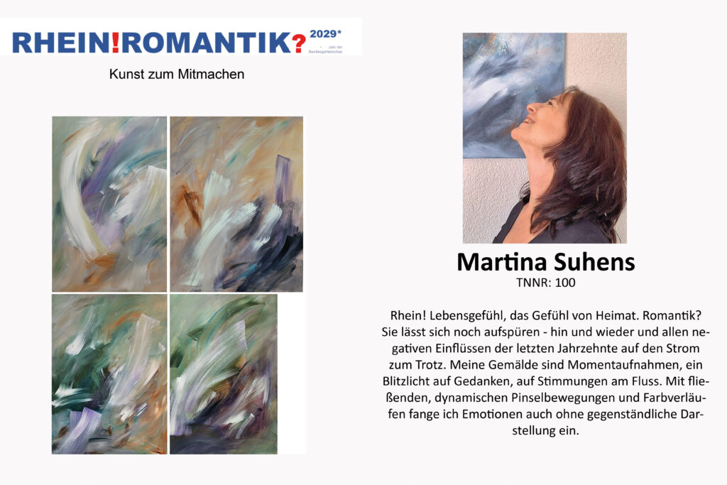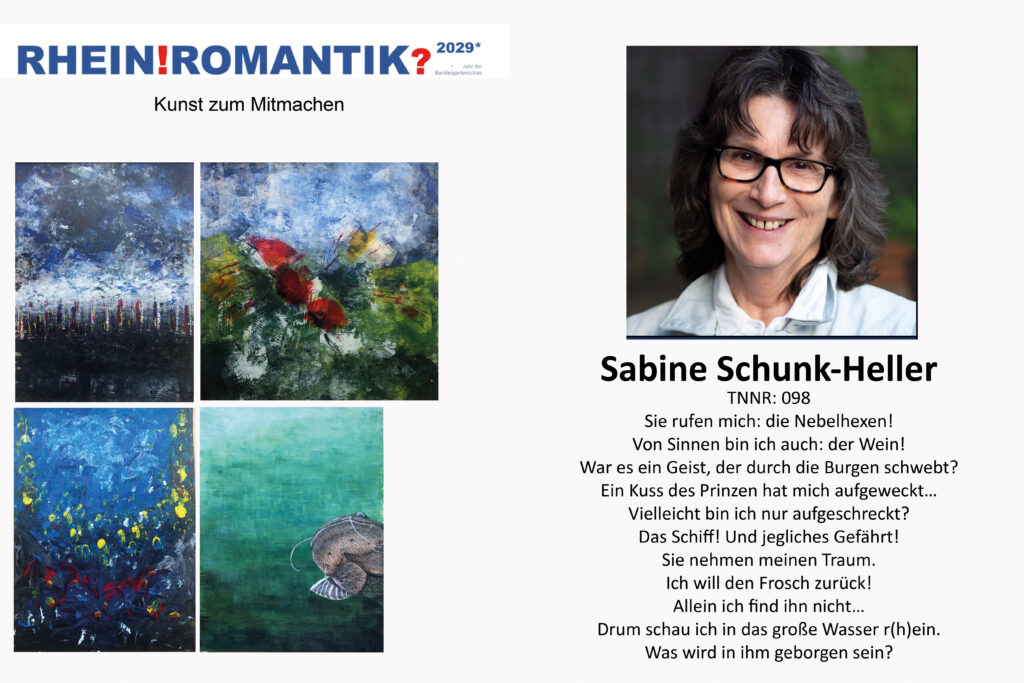 Als Malerin, die seit vielen Jahren am Rhein lebt, sehe ich die Rheinromantik nicht als abgeschlossene Epoche, sondern als offenen Raum der Empfindung. Das ! steht für das Staunen, für die starke emotionale Kraft, die der Rhein in mir immer noch auslöst – in Licht, Bewegung, Geschichte und Natur. Das ? dagegen lässt mich fragen: Was ist geblieben von der Idee der Romantik? Ist sie heute nur noch ein Bild im Kopf – oder lebt sie weiter in unseren Blicken, in der Kunst, im Alltag?