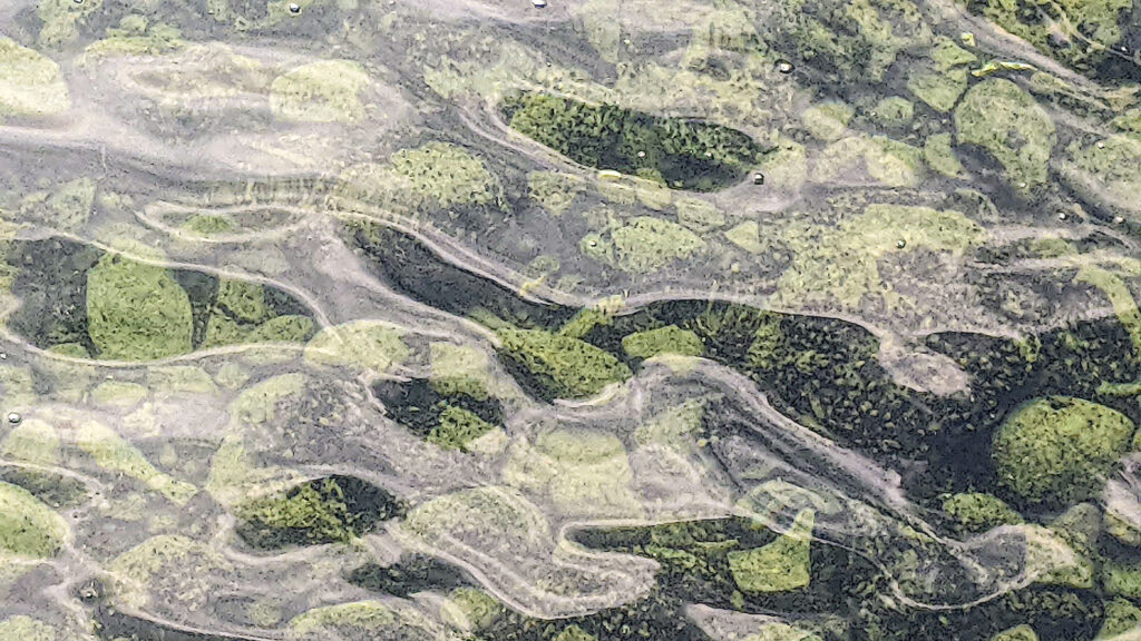 Alles Gute kommt von unten, vom Grund des Flusses her. Wer gurgelt und gluckst denn im Wasser gleich an der Mauer? Wer schickt die schönen Luftblasen hoch? Wie Rauchzeichen, nur etwas nasser, soll ich sie enträtseln: Bleib hier am Ufer und schick deine Gedanken auf die Reise. Setz die rosarote Brille auf und lass‘ dich in den nächsten Sommer entführen. Schon ist alles, was dich an deinem Ausflug zu hindern scheint, nur Schnee von gestern.