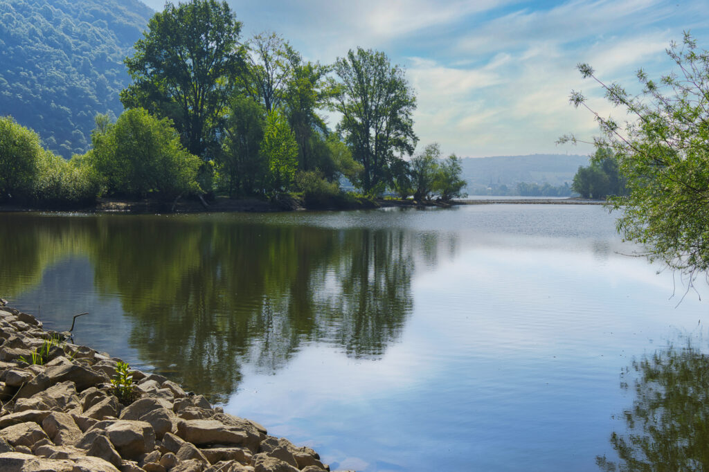 Der Rhein ist ohne sein Wasser nicht denkbar – Fluss, Strom, Strömung. Wasser formt die Landschaft, trägt Schiffe und prägt das Klima der Weinberge. Seit Jahrhunderten inspiriert es Dichtung und Malerei. Es steht für Leben und Bewegung, für Spiegelungen und romantische Stimmungen.