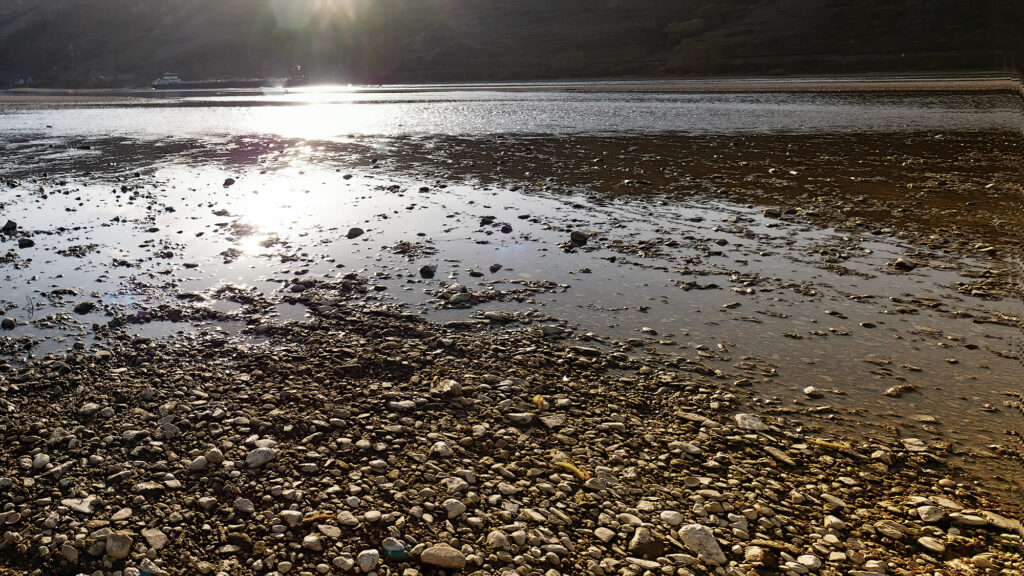 Die Steine des Rheins sind mehr als bloßes Geröll. Sie können romantisch verklärt werden – als uralte Zeugen der Natur, Sinnbilder von Zeitlosigkeit. Doch im Licht der Gegenwart kippt die Perspektive: Trockenes Geröllbett im Niedrigwasser, sichtbar gewordene Bruchstellen der Landschaft, Mahnung an den Klimawandel.
