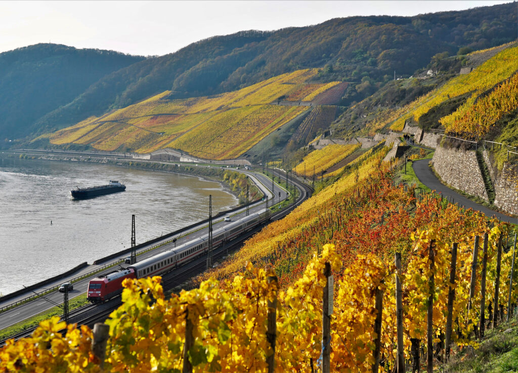 Der Weinbau gehört untrennbar zum Bild des Rheins. Rebhänge prägen die Ufer, Terrassen klettern an den Hängen empor, Mauern stützen die steilen Lagen. Sie erzählen von jahrhundertelanger Arbeit, von Wissen um Boden, Klima und Rebsorten – und von einer Kulturlandschaft, die sich ständig verändert.